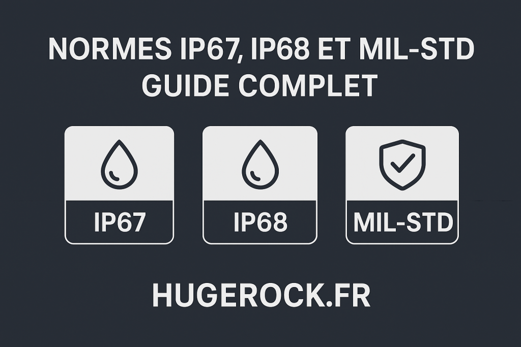 Découvrez la différence entre IP67, IP68 et MIL-STD. Étanchéité, résistance militaire et robustesse expliquées par Hugerock.fr.